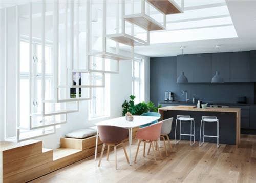This hanging stair is as beautiful as something fell from the heaven, making the old house of 19 century sacred and appealing. Ingeniously it saves the space a lot and divides the living room and dining space.